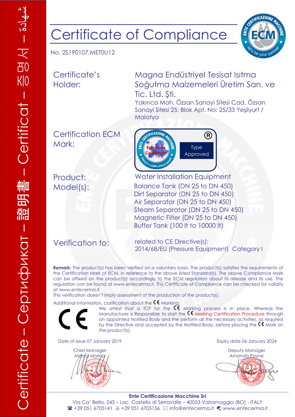 Buffer Tank CE Belgesi
