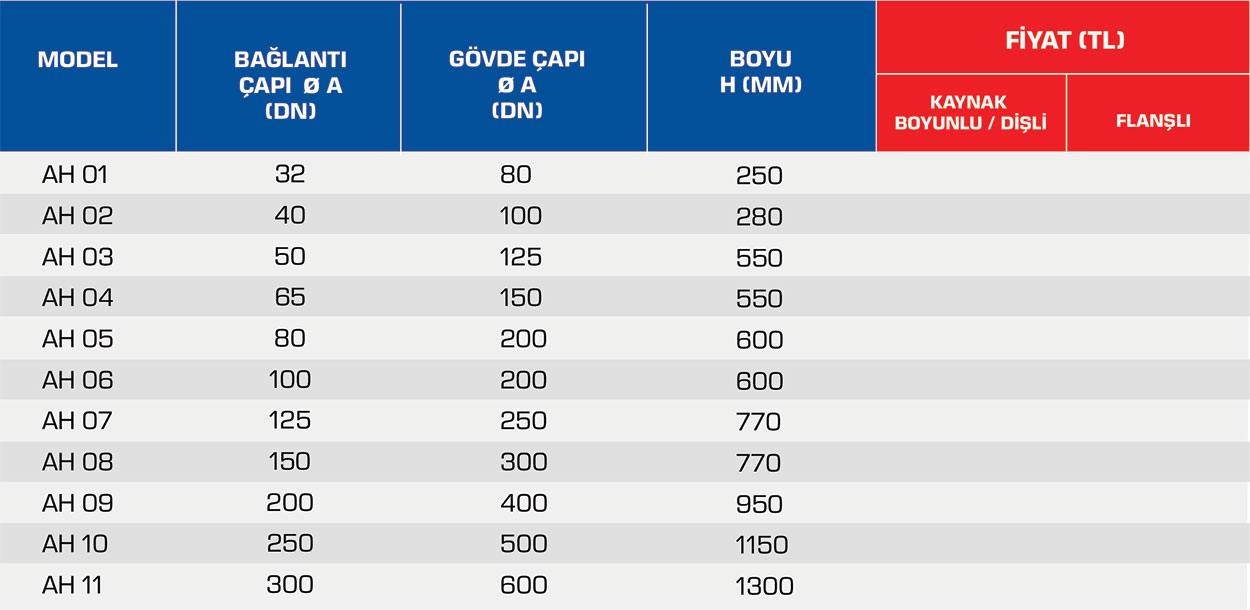 İsteğe bağlı olarak farklı ebat, malzeme ve çaplarda imal edilmektedir.