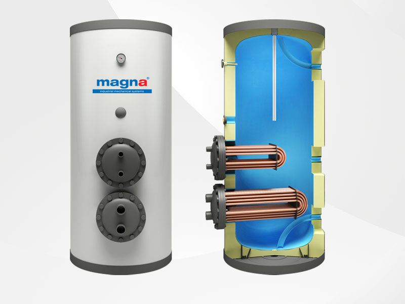 Magna Boyler ve Akümülasyon Tankları Çeşitli ısı kaynaklarından (Sıcak su kazanı, buhar kazanı, güneş kolektörü, isi pompası. vs) alınan ısı enerjinin kullanım suyuna transferini sağlayan ve kullanıma hazır olan bu suyu depolamaya yarayan tesisat elemanı veya cihazlardır.