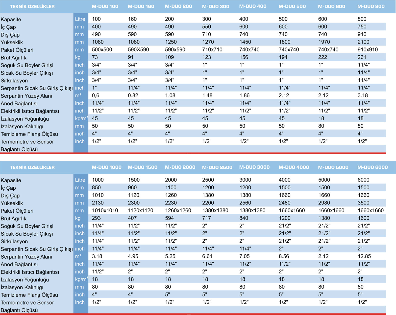 - 800 lt den 6000 lt ye dahil ürünlerde 50mm kalınlığında 23kg/m3 soft poliüretan izolasyonlu,